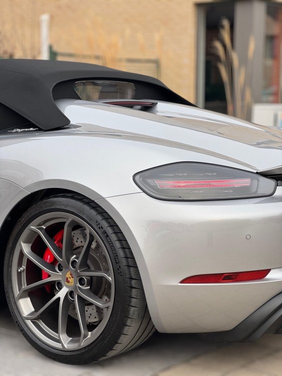 Bonjour, Suite à nouveau projet, je vend mon 718 Spyder PDK, gris Argent Gt, dont vous trouverez les détails ci-dessous. Par sécurité, j’ai confié la vente à un spécialiste Porsche que vous pouvez contacter si intéressé : August Porsche Addiction, +32 2 633 36 79 Ci-après le lien de l’annonce vous permettant de découvrir mon véhicule : 718 Spyder PDK. Cordialement, Prix : 109.850 € 1ère immatriculation :01/07/2021 Km : 14.937 Couleur ext. : Gris Argent GT Couleur int. : Cuir et Alcantara Noir surpiqûres rouges PPF Complet + Céramique sur PPF capote, jantes, étriers Carnet d’entretien complet centre Porsche : 12/08/2021 : 2.371km 06/06/2023 : 8.987km 24/01/2025 : 13.198km Options : Boîte de vitesses à double embrayage Porsche (PDK) Logo « PORSCHE » peint en noir (satiné) Model peint en noir (Brillant) Lave-phare peint couleur carrosserie Roues peintes en platinium (satiné) Volant sport GT Multifonction et volant chauffant Sièges sport adaptatifs Plus (18 voies, électriques) Sièges chauffants Climatisation automatique à 2 zones Pack fumeur Tapis de sol Ceintures de sécurité contrastée Coutures de couleur contrastée Pare-soleil en cuir Ecusson Porsche sur accoudoir centrale Système audio BOSE® Surround Apple® CarPlay Navigation y compris Porsche Connect Phares principaux à LED, y compris Porsche Dynamic Light System Plus (PDLS Plus) Pack Design d'éclairage Rétroviseurs extérieurs rabattables électriquement, y compris éclairage de l'avant des portes Rétroviseurs intérieurs/extérieurs à atténuation automatique de la luminosité avec capteur de pluie intégré Assistant de stationnement arrière avec caméra de recul Temposat