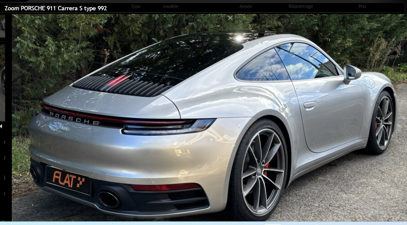 Hello, il y en a une chez Flat 69, l'avez vous vu: https://www.flat69.fr/occasion-porsche-lyon/PORSCHE-911-Carrera-S-992-Argent-GT-MN�tallisN�-9983202664#fiche Belle route,