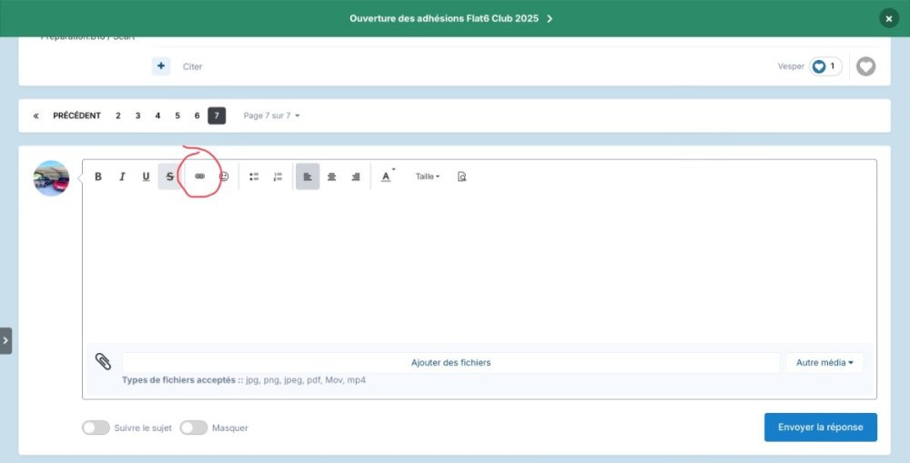 FLAT6CLUB Posté(e) le 26 janvier Auteur Posté(e) le 26 janvier il y a 12 minutes, nicogri a dit : Et j'ai pas trouvé comment insérer une image depuis mon tel. Pas possible vraiment de remettre tapatalk ? Sur phpbb c'était natif avec juste une clé api à ajouter Tu n'as pas le bouton ajouter un fichier en mode édition ?