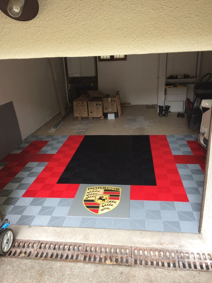 Wraoum Posté(e) le 25 juillet Posté(e) le 25 juillet Sans vouloir faire de la pub pour eux, j'aime bien Swisstrax... ai fait plusieurs garages avec leurs dalles, se pose en quelques heures, ne bouge pas dans le temps, un coup d'aspi. - de serpillière / an et impeccable lorsque la voiture est mouillée (l'eau s'écoule)... Pendant et après la pose, avec ici mon ancienne Panamera... 1