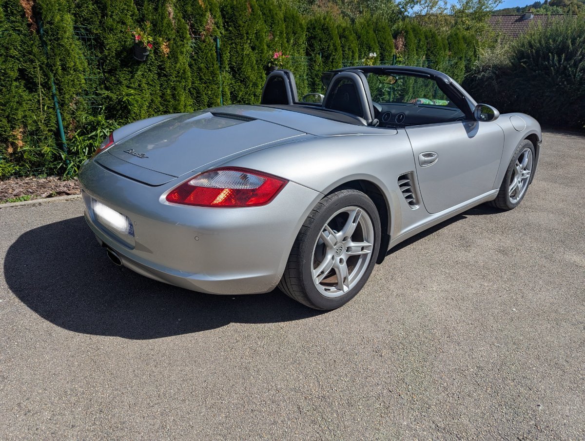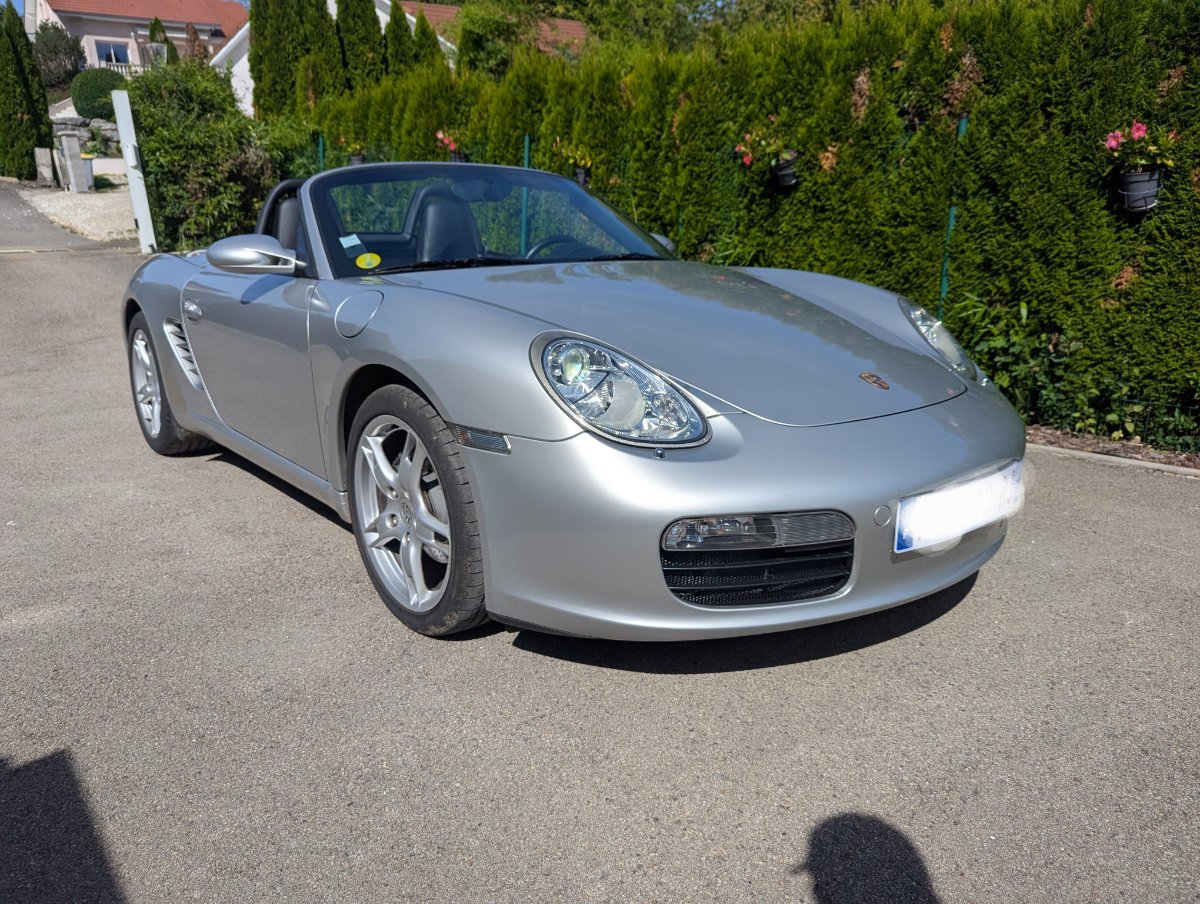PFAFF Posté(e) le 25 octobre Posté(e) le 25 octobre Bonjour à tous, Pour cause de nouveau projet professionnel, je me résigne à vendre mon Boxster. C'est un 987 gris argent, full cuir étendu noir, en 2.7 245cv (moteur M97-20), bvm5. Il a 96200 kms, il a un carnet rempli à 100% dans les temps (PORSCHE et spécialiste). Dernière révision Mars 2025. Les pneus sont neufs, Michelin N4. Il est en super état général (carrosserie, mécanique, intérieur, capote, consommables). A voir si ça peut intéresser un amateur, en cette saison. Liste des options : C00 : Pays de livraison Allemagne 195 : Batterie 70 Ah 242 : Code de production interne relatif aux pneus 288 : Laves phares 342 : Siège chauffant 397 : Jantes 18 pouces Boxster S 424 : Rangement CD 440 : Antenne de pare brise (454 : Régulateur de vitesse > ajouté en 2ème monte en 2024 par spécialiste Porsche) 490 : Système audio ASK 502 : Produit à Valmet Finlande 534 : Alarme 433 MHz 551 : Pare vent 573 : Climatisation automatique 584 : Rangement sur compartiment moteur 601 : Feux Xenon 610 : DVD Navigation Europe 635 : Capteurs de stationnement arrière 665 : PCM 2 Porsche communication Management inclus radio et cd 666 : Module téléphone pour PCM 670 : Module Navigation pour PCM 674 : Préparation pour le système de suivi véhicules 810 : Tapis de sol 981 : Tableau de bord et panneaux de porte en cuir 983 : Sièges en cuir Grilles de protection des condenseurs de climatisation. Je reste à disposition pour toute question. Merci
