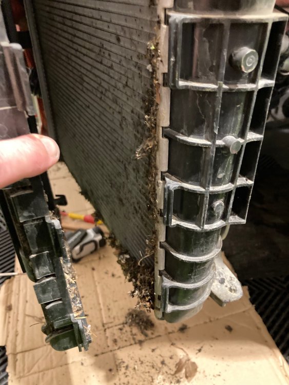 Le nettoyage des écopes n'ai pas un luxe, ainsi que les passages de roues et plus particulièrement derrière le pare boue les logements des ventilateurs... J'ai bien retiré une bonne poignée de gravillons qui étaient logés à cet endroit, (à l'aide d'un aspirateur et d'un tournevis très fin pour déloger de petits cailloux sur le bas des radiateurs) à la longue les radiateurs ne vont pas aimer Le démontage du PC est utile, pour nettoyer les condenseurs et entre les condenseurs et les radiateurs .... en image ce que j'ai retiré alors de que le Boxster à peine 39000 kms La pose des grilles au niveau de écopes va permettre de protéger les condenseurs.