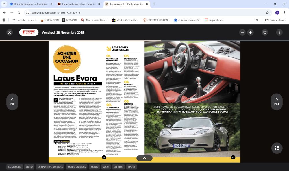Bonsoir à tous! Cela fait bientôt 10 mois que j'ai ouvert cet échange et je suis heureux d'annoncer que ma maison va enfin etre vendue définitivement en février prochain (délais de rétractation passé et crédit OK pour les acheteurs), ce fut long, très douloureux financièrement, et bientôt le divorce est enfin en vue, amen 🙏 Je vais donc pouvoir regarder sous peu pour réellement acheter. Je pensais à la base à un cayman 987 2.7 Mais après en avoir autant ch** je veux me faire plaisir et envisage désormais un 2.9 265 (voir un 981 en 275...). Je ne veux pas mettre plus de 45/47000€ (et qqchose à 80000km max serait idéal). Éventuellement un Boxster en 275 serait envisageable à la place car ça sera ma voiture balade, et je réserve la piste à mon Elise. Toujours fan de la boîte meca.... Mais à voir si grosse différence de prix. Je vous tiendrai informé de l'avancée des évènements 😁 Au plaisir d'échanger plus activement sous peu voire se balader ensemble ! -
